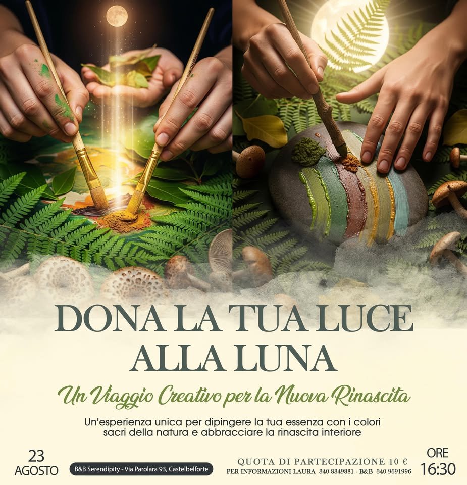 Siamo entusiasti di annunciarvi un evento unico e profondamente significativo: “Dona la Tua Luce alla Luna”! Preparatevi a vivere un’esperienza di condivisione e creatività che toccherà le corde più profonde della vostra anima, con l’intento di abbracciare la rinascita e illuminare il buio con la vostra essenza più vera.